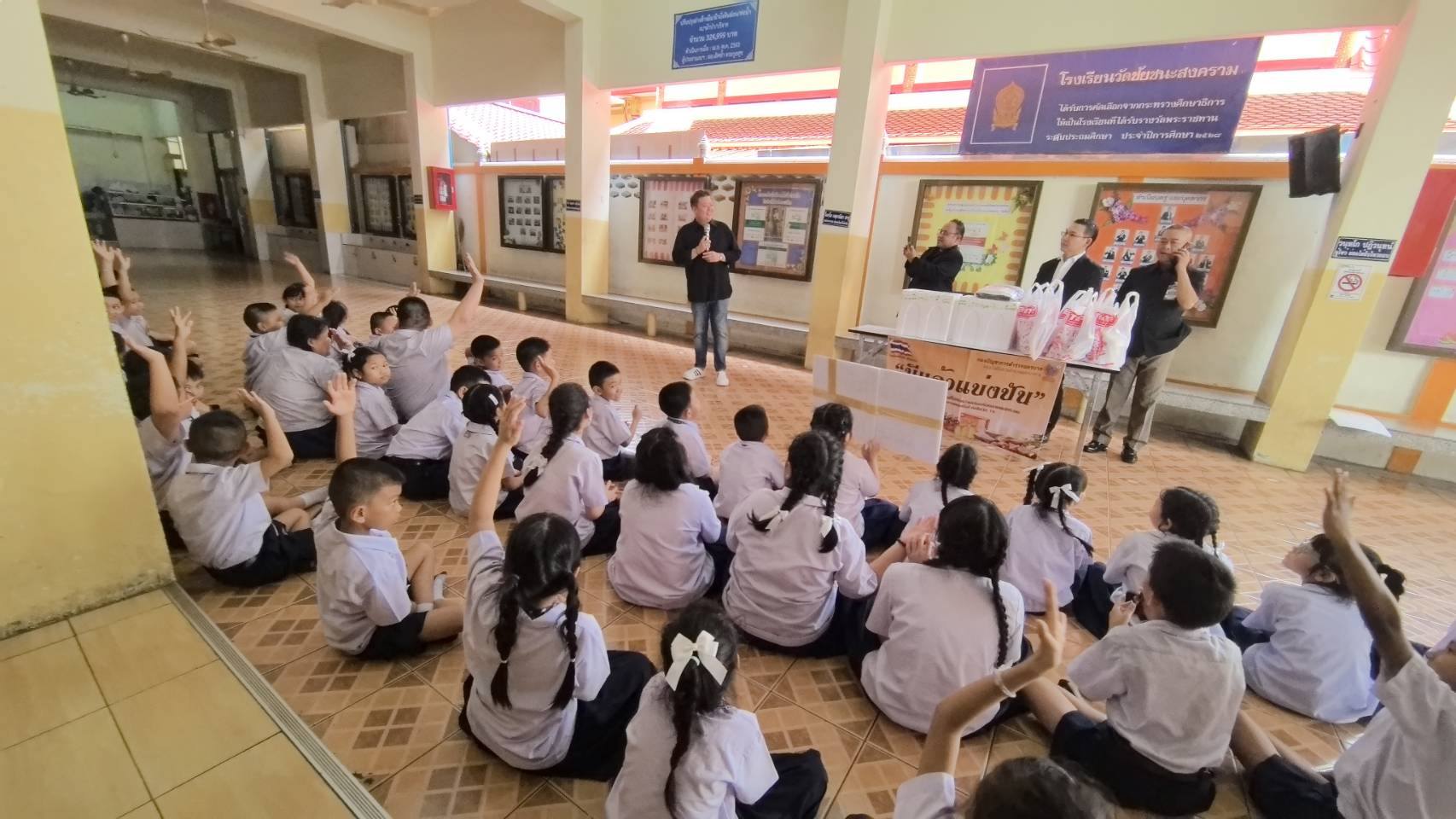 จากนั้น คณะได้เดินทางต่อไปยัง โรงเรียนวัดชัยชนะสงคราม เพื่อนำ ไอศกรีม ไปแจกจ่ายให้กับเด็กนักเรียน สร้างรอยยิ้มและความอิ่มอร่อยให้กับน้องๆ ทั่วกัน