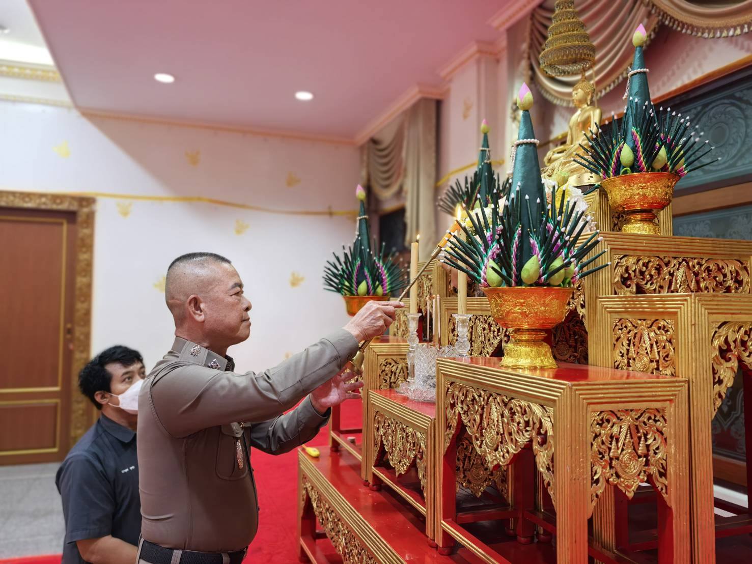 พร้อมด้วย พ.ต.ท.ศุภโชค ภูผาคุณ สารวัตรป้องกันปราบปราม (ชส.)ฯ และ ร.ต.อ.หญิงพันนี เครือทิม รองสารวัตรธุรการฯ ได้นำกำลังพลประกอบด้วย เจ้าหน้าที่สายตรวจ (จักรวรรดิ 20), ตำรวจชุมชนสัมพันธ์ และนักเรียนนายสิบตำรวจฝึกงาน (นสต.) เข้าร่วมพิธีสำคัญทางศาสนา