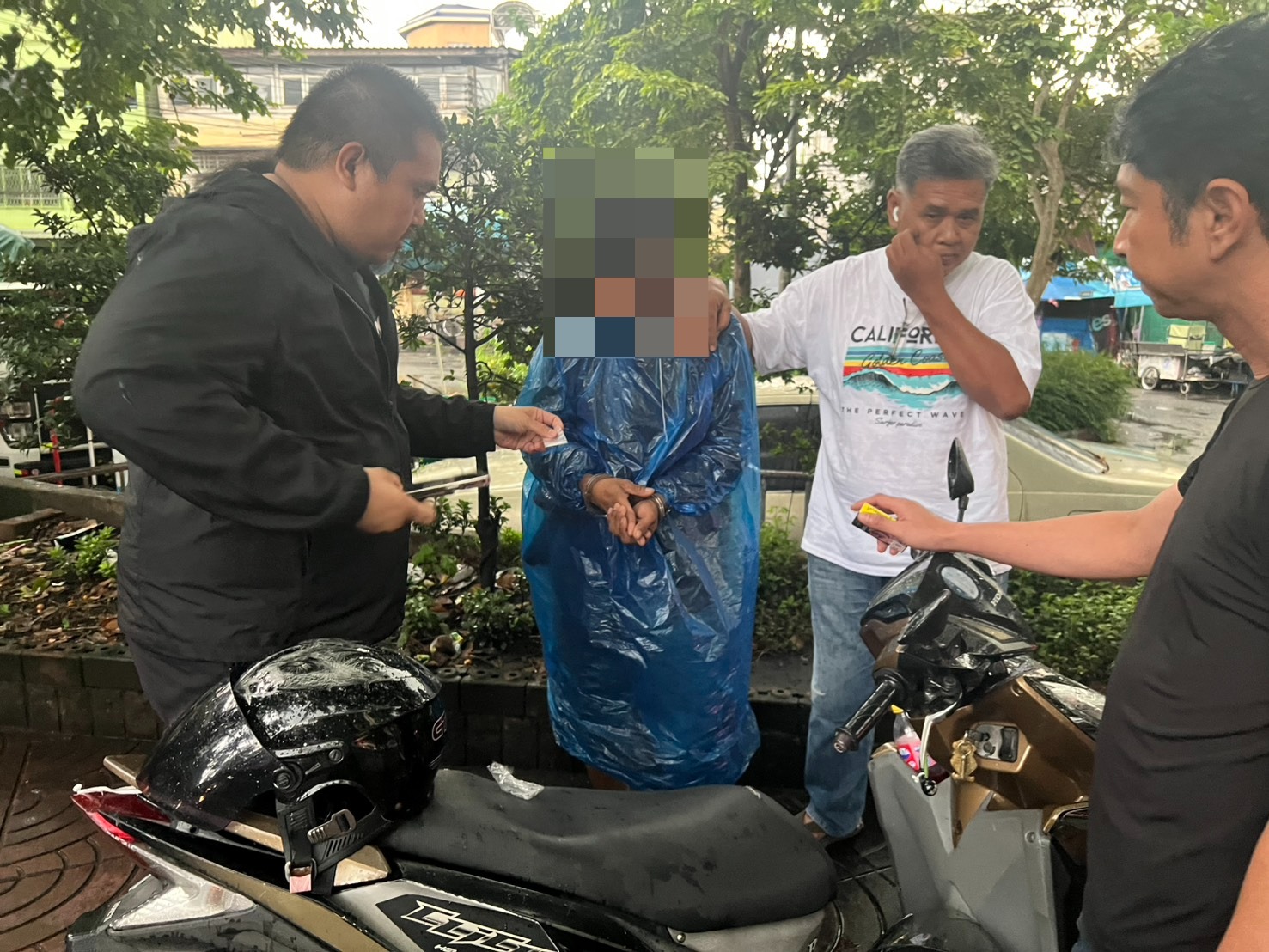 พฤติการณ์จับกุมสืบเนื่องจากเจ้าหน้าที่ชุดสืบสวนได้รับแจ้งจากสายลับว่าสามารถสั่งซื้อยาไอซ์จากนายปุ้ยได้ผ่านทางเฟซบุ๊กแมสเซนเจอร์ จึงวางแผนล่อซื้อยาไอซ์จำนวน 1 ถุง ในราคา 500 บาท โดยนายปุ้ยให้สายลับโอนเงินเข้าบัญชีธนาคารในชื่อของตนเองก่อนนัดส่งมอบยาเสพติดบริเวณทางเดินเท้า ถนนจักรวรรดิ เมื่อถึงเวลานัดหมาย นายปุ้ยได้ขับขี่รถจักรยานยนต์มาส่งมอบยาเสพติดให้กับสายลับ เจ้าหน้าที่ที่ซุ่มสังเกตการณ์อยู่จึงแสดงตัวเข้าจับกุมพร้อมตรวจค้นพบโทรศัพท์มือถือที่ใช้ติดต่อซื้อขายอยู่ในมือของผู้ต้องหา