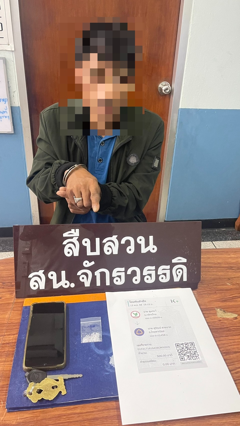 เมื่อวันที่ 13 พฤศจิกายน 2568 เวลาประมาณ 17.00 น. เจ้าหน้าที่ตำรวจฝ่ายสืบสวน สถานีตำรวจนครบาลจักรวรรดิ (สน.จักรวรรดิ) ภายใต้การอำนวยการของ พ.ต.อ.วัชรวีร์ ธรรมเสมา ผกก.สน.จักรวรรดิ และ พ.ต.ท.ณัฐวุฒิ ฝั้นมงคล รอง ผกก.สส.สน.จักรวรรดิ ได้นำกำลังเข้าจับกุมตัว นายสุวัฒน์ หรือปุ้ย สายนาค อายุ 37 ปี ชาวจังหวัดบุรีรัมย์ พร้อมของกลางยาเสพติดให้โทษประเภท 1 (ยาไอซ์) น้ำหนักรวมถุงประมาณ 0.94 กรัม โทรศัพท์มือถือวีโว่ รถจักรยานยนต์ฮอนด้า คลิก สีดำ หมายเลขทะเบียน อกป 379 กรุงเทพมหานคร และหลักฐานสำเนาสลิปการโอนเงินจำนวน 500 บาท