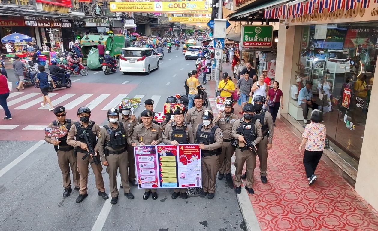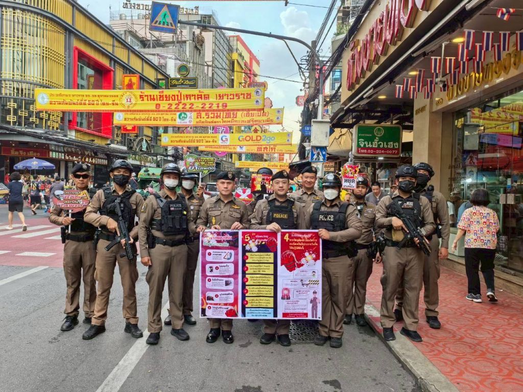 สน.จักรวรรดิ ปล่อยแถวเข้ม! รณรงค์มาตรการป้องกันเหตุร้านทองเยาวราช ย้ำติดกล้อง-ประตูนิรภัย