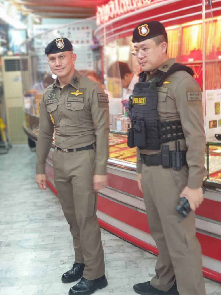 สน.จักรวรรดิ – (9 ต.ค. 68) พ.ต.อ.วัชรวีร์ ธรรมเสมา ผู้กำกับการสถานีตำรวจนครบาลจักรวรรดิ, พ.ต.ท.เฉลิมพล บุญทาวัน รองผู้กำกับการป้องกันปราบปรามฯ และ พ.ต.ท.พงษ์สิทธิ์ เมฆแสงศรี สารวัตรป้องกันปราบปรามฯ ได้นำทีมดำเนินการประชาสัมพันธ์และยกระดับมาตรการป้องกันเหตุประทุษร้ายร้านค้าทองในย่านถนนเยาวราชอย่างเข้มข้น