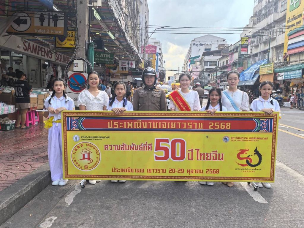 เยาวราช – (20 ต.ค. 68) พล.ต.ต.นิติวัฒน์ แสนสิ่ง รองผู้บังคับการตำรวจนครบาล 6 (บก.น.6-2) พร้อมด้วย พ.ต.ท.เฉลิมพล บุญทาวัน รองผู้กำกับการป้องกันปราบปราม สน.จักรวรรดิ และ พ.ต.ท.พีรพงศ์ พงศ์ศักดากร รองผู้กำกับการจราจร สน.จักรวรรดิ ได้เข้าร่วมในพิธีสำคัญของ เทศกาลเจเยาวราช 2568