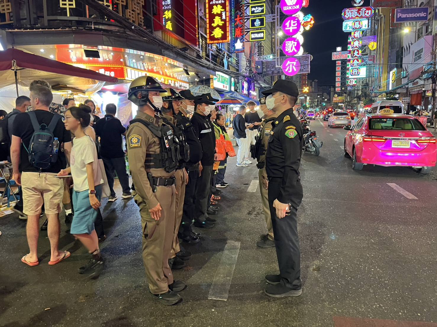 เจ้าหน้าที่ได้ออกตรวจตราป้องกันเหตุตามมาตรการดูแลรักษาความปลอดภัย และให้บริการประชาชนและนักท่องเที่ยวบน ถนนเยาวราช เพื่อสร้างความอุ่นใจและภาพลักษณ์ที่ดีในฐานะเจ้าบ้าน