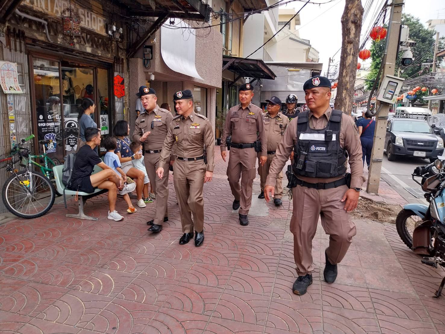 คณะเจ้าหน้าที่ได้ออกตรวจตราและเยี่ยมเยียนประชาชนใน ย่านถนนคนเดินทรงวาด เพื่อดำเนินการตามมาตรการดูแลรักษาความปลอดภัย ป้องกันเหตุอาชญากรรม และอำนวยความสะดวกด้านการจราจรให้กับผู้สัญจรไปมา