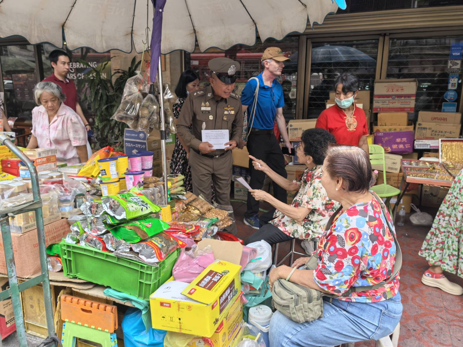 โดยสนธิกำลังร่วมกับ คณะ กต.ตร. และที่ปรึกษา สน.จักรวรรดิ, ทีมงานตำรวจชุมชนสัมพันธ์ (ตชส.), นักเรียนนายสิบตำรวจฝึกงาน (นสต.), เจ้าหน้าที่สายตรวจ และตำรวจจราจร ออกเดินรณรงค์ประชาสัมพันธ์และสร้างการรับรู้ให้กับพี่น้องประชาชนและผู้ประกอบการในพื้นที่