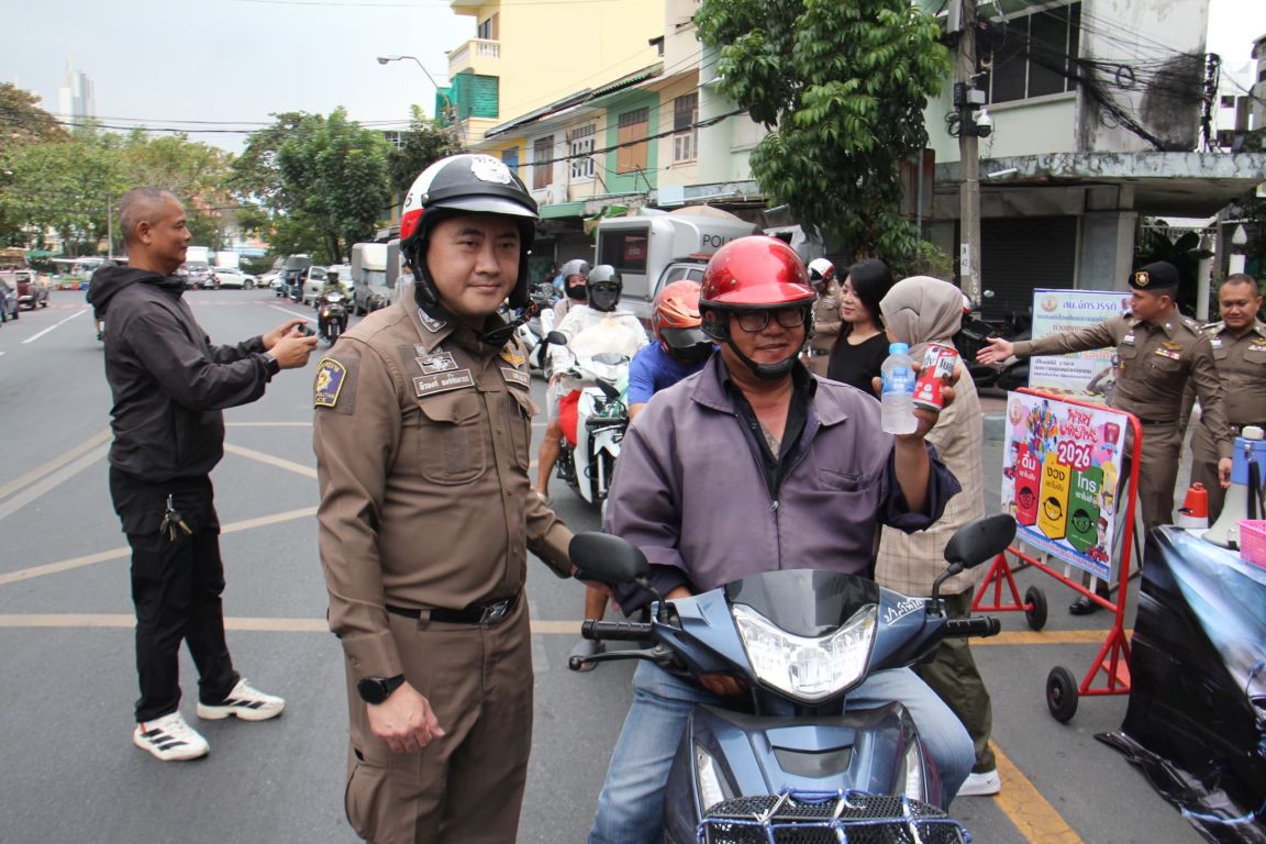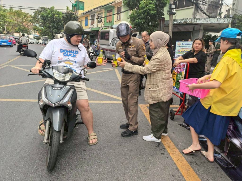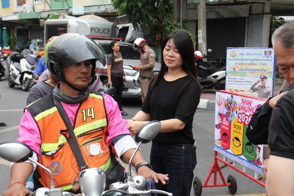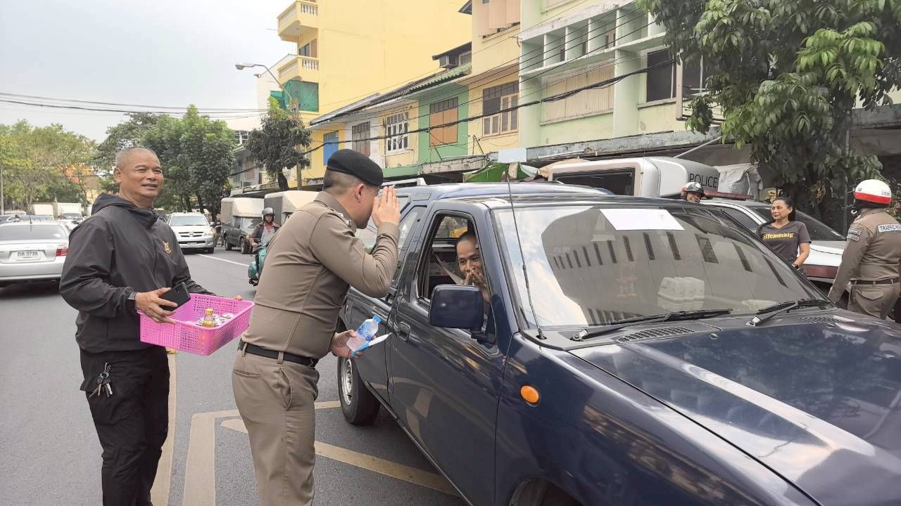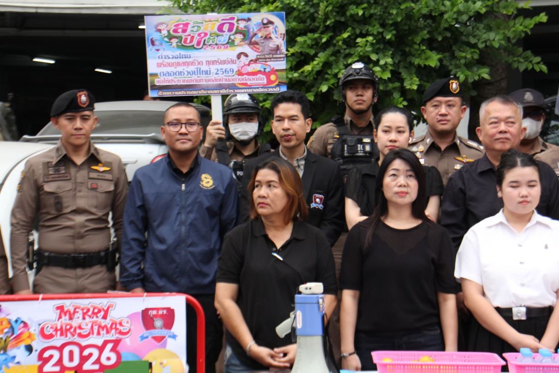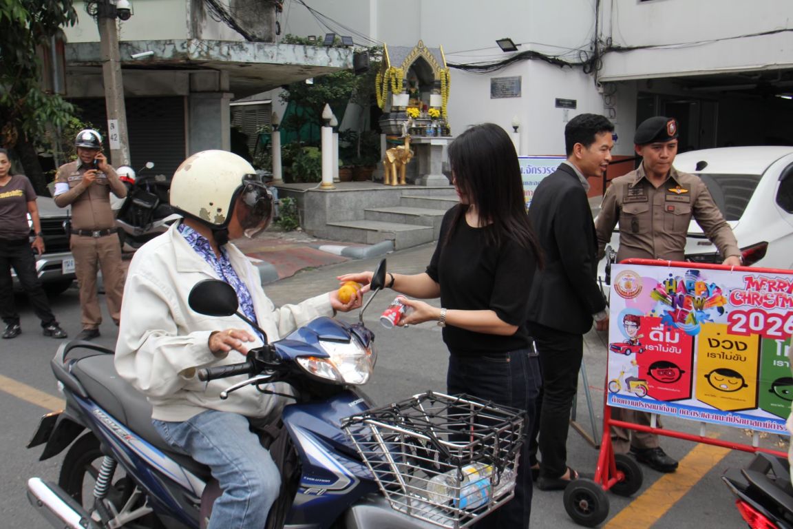ส่งความสุข "Merry Christmas" ผนึก กต.ตร.-นศ.อาสา แจกเครื่องดื่ม-ผ้าเย็น รณรงค์ขับขี่ปลอดภัยรับปีใหม่ 69