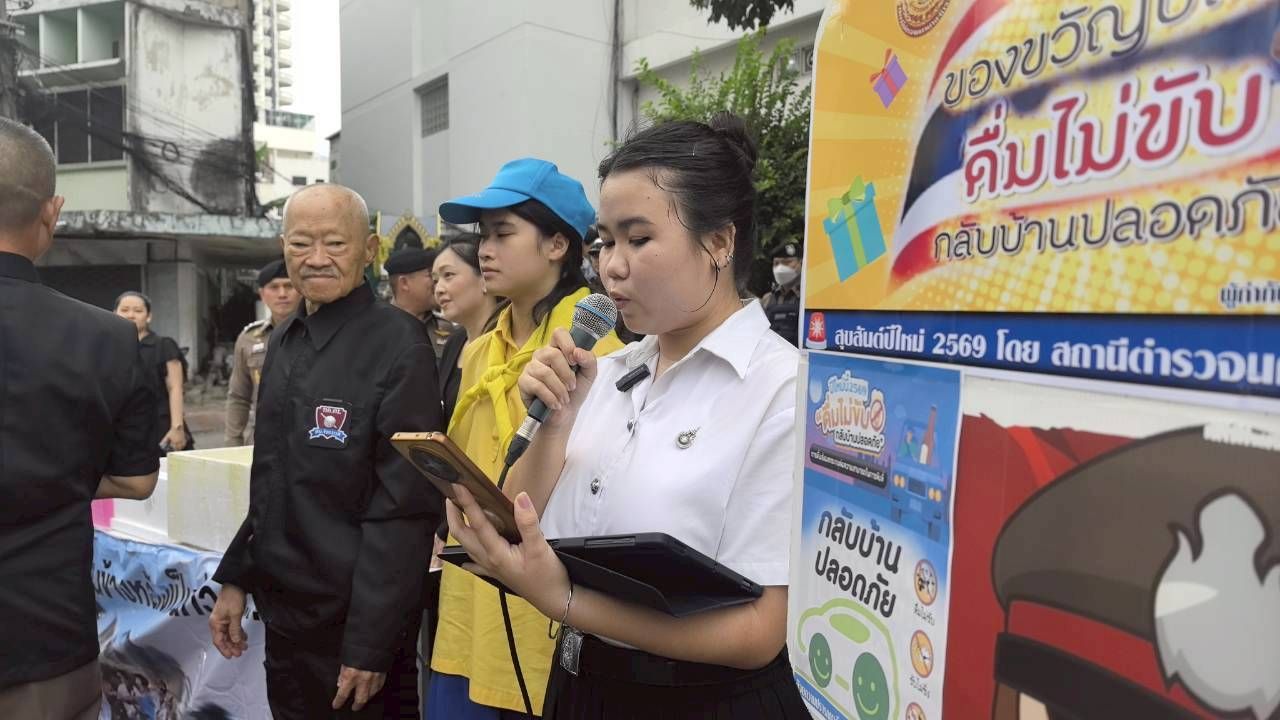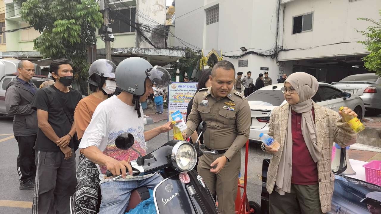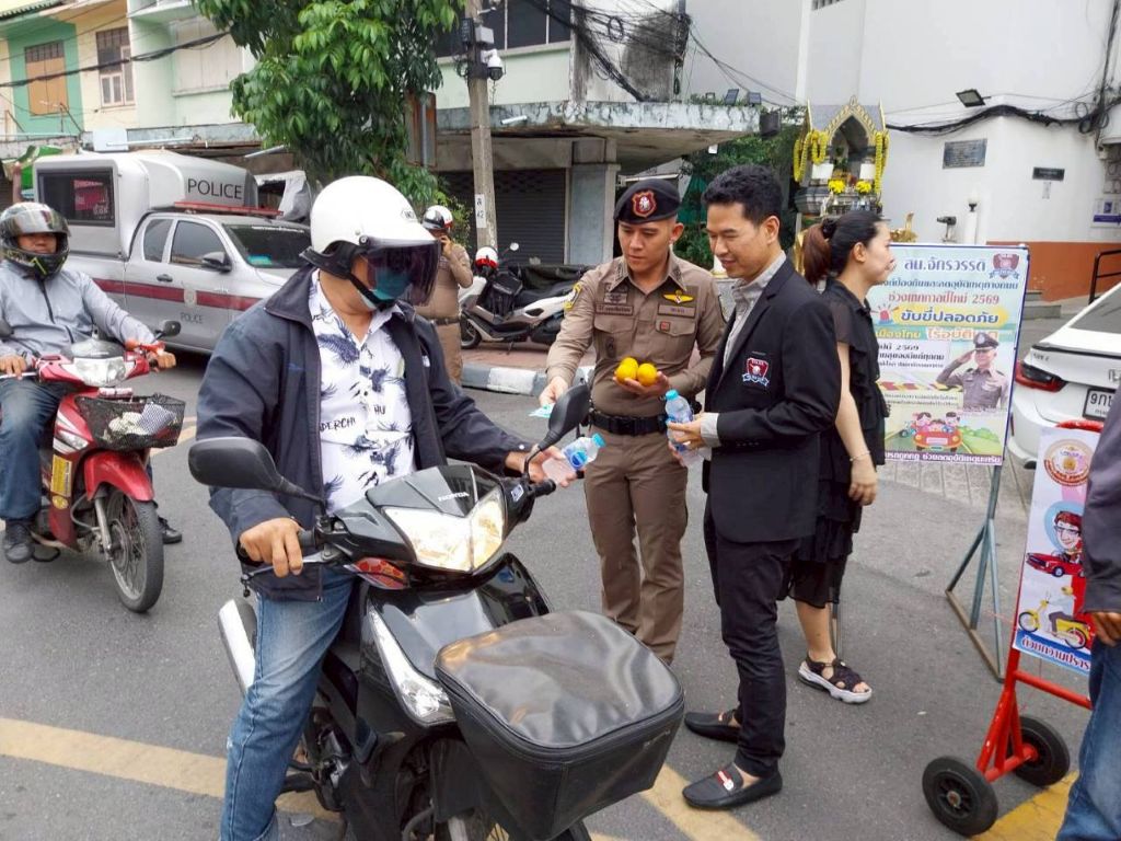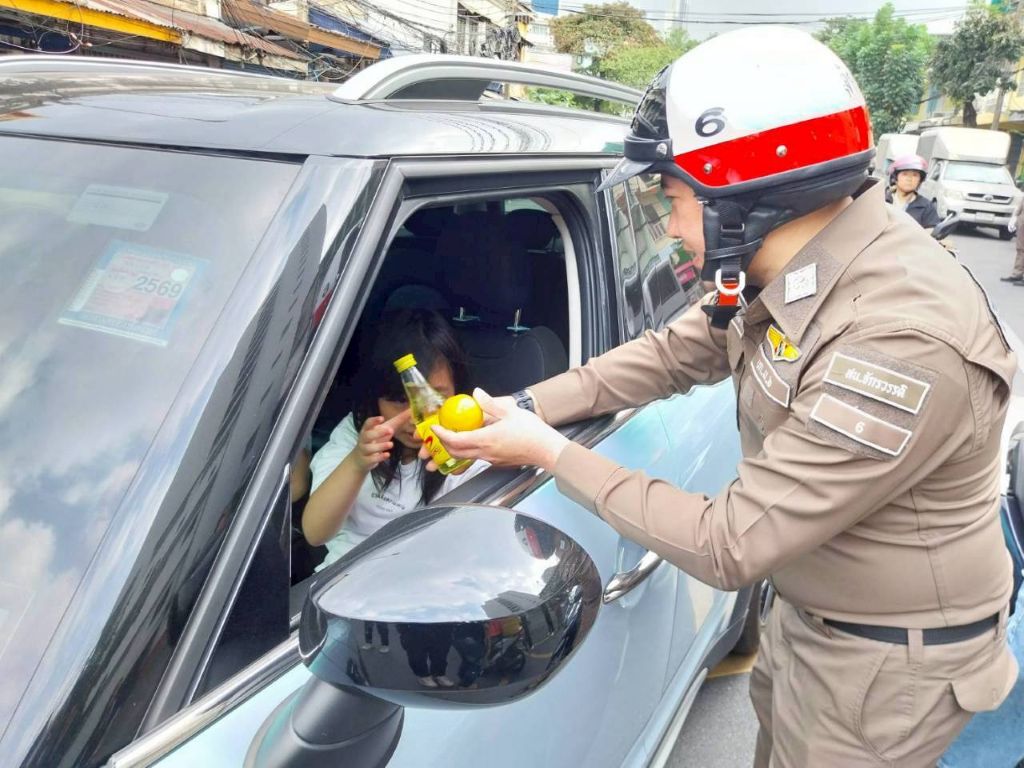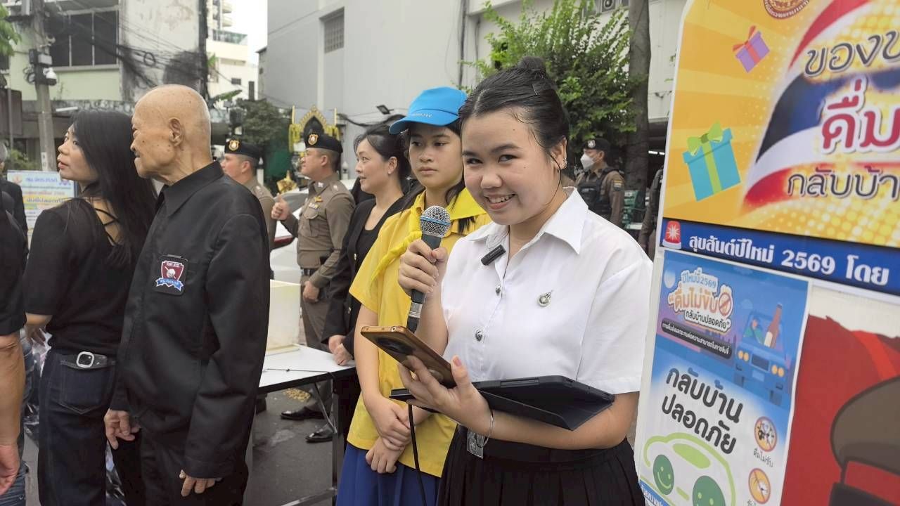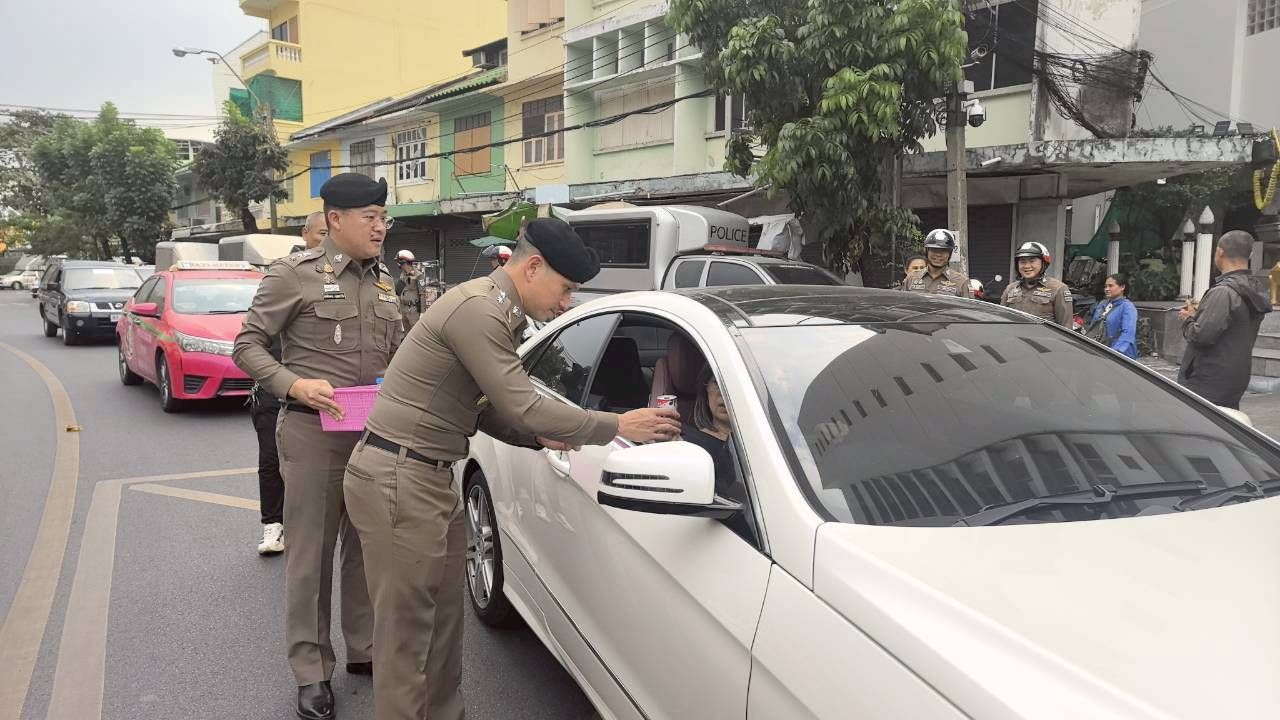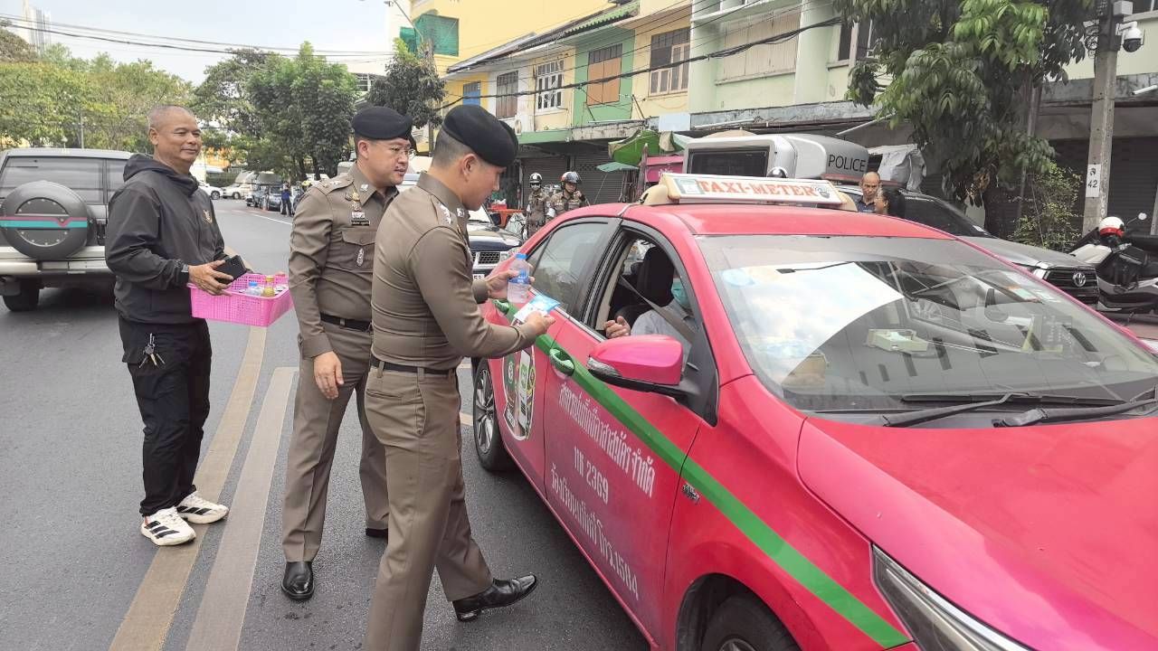 ส่งความสุข "Merry Christmas" ผนึก กต.ตร.-นศ.อาสา แจกเครื่องดื่ม-ผ้าเย็น รณรงค์ขับขี่ปลอดภัยรับปีใหม่ 69