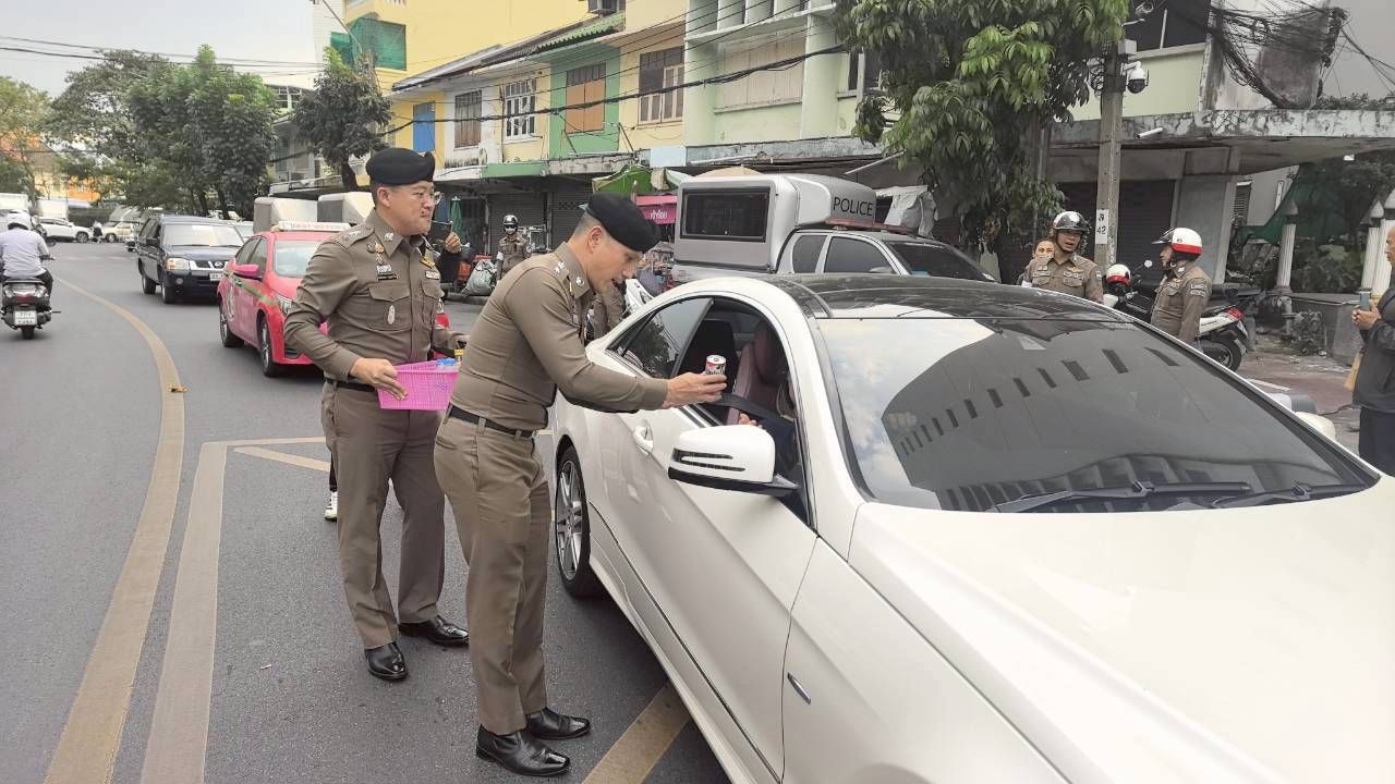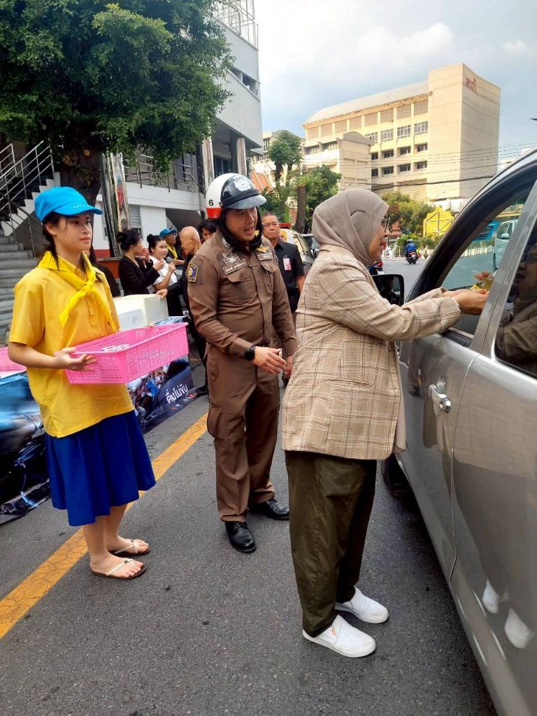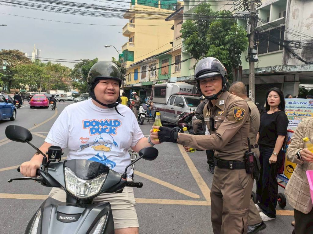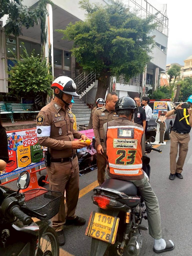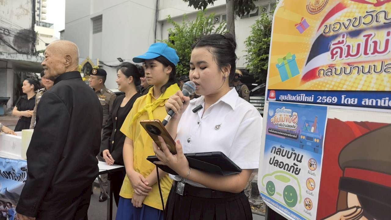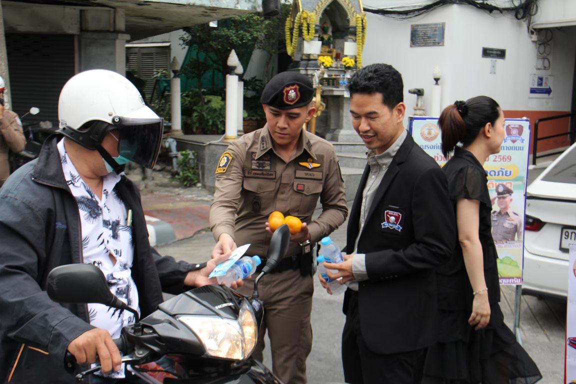 ส่งความสุข "Merry Christmas" ผนึก กต.ตร.-นศ.อาสา แจกเครื่องดื่ม-ผ้าเย็น รณรงค์ขับขี่ปลอดภัยรับปีใหม่ 69