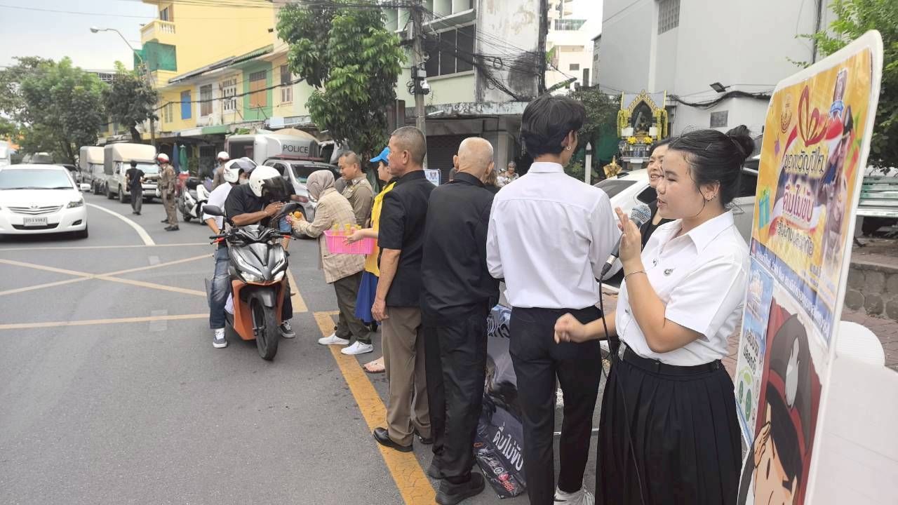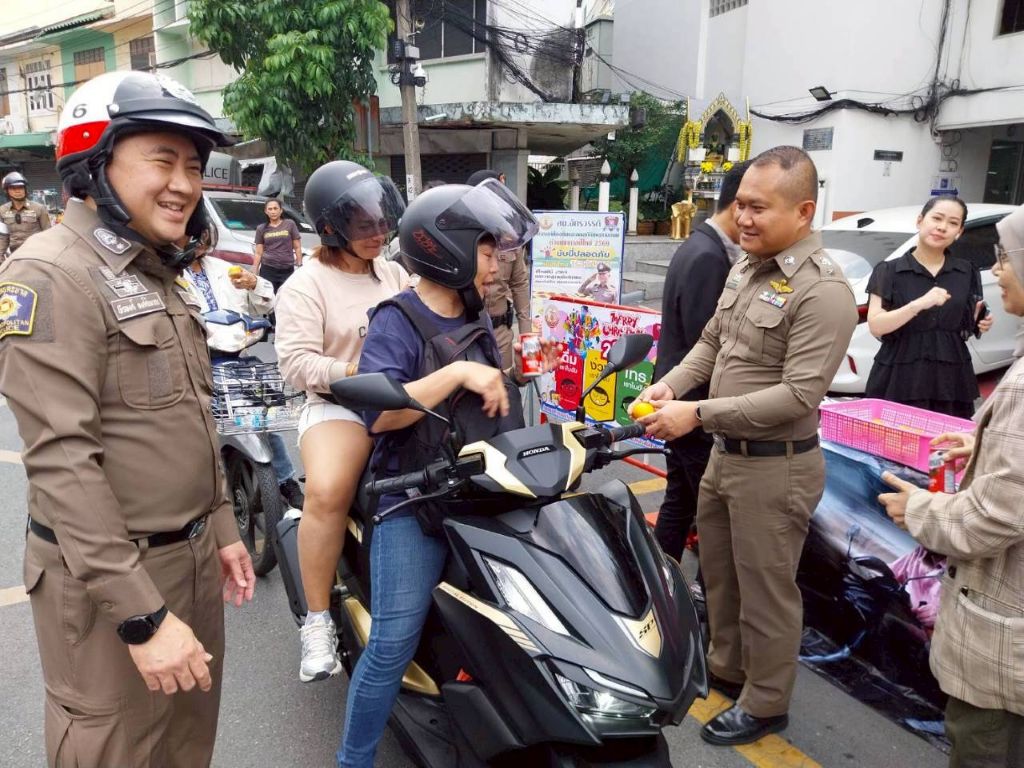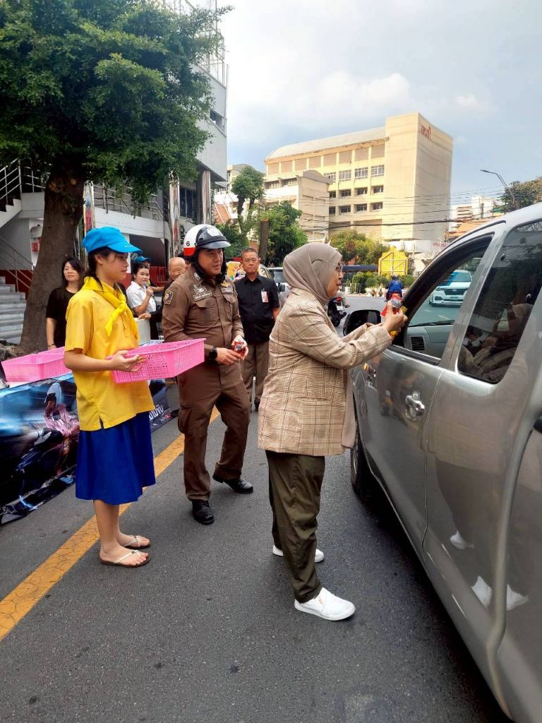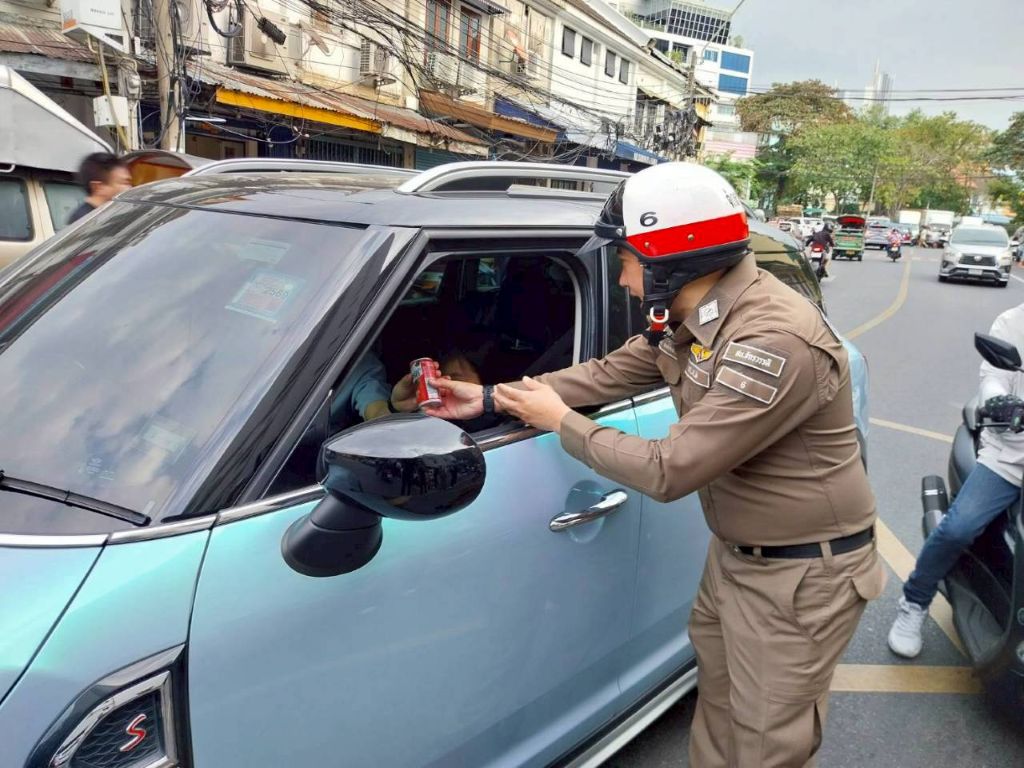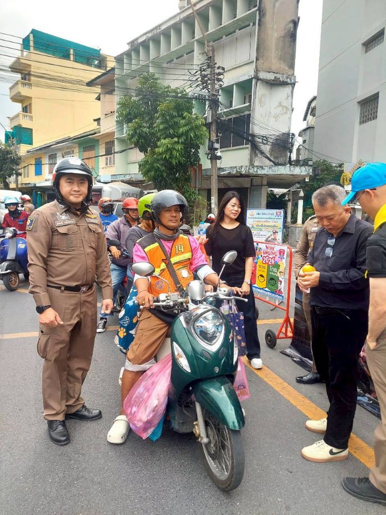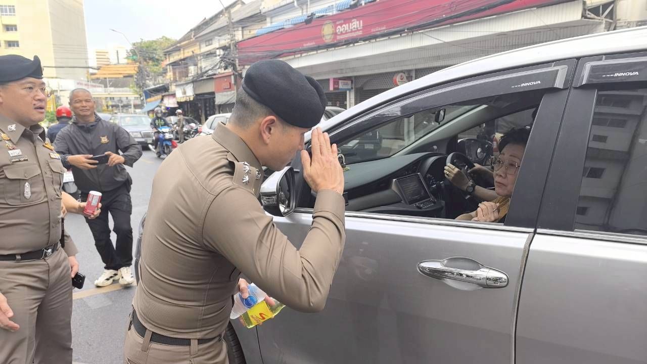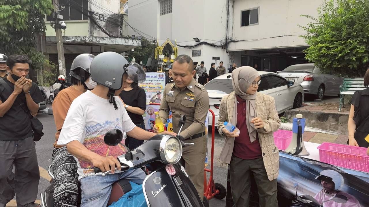 ส่งความสุข "Merry Christmas" ผนึก กต.ตร.-นศ.อาสา แจกเครื่องดื่ม-ผ้าเย็น รณรงค์ขับขี่ปลอดภัยรับปีใหม่ 69