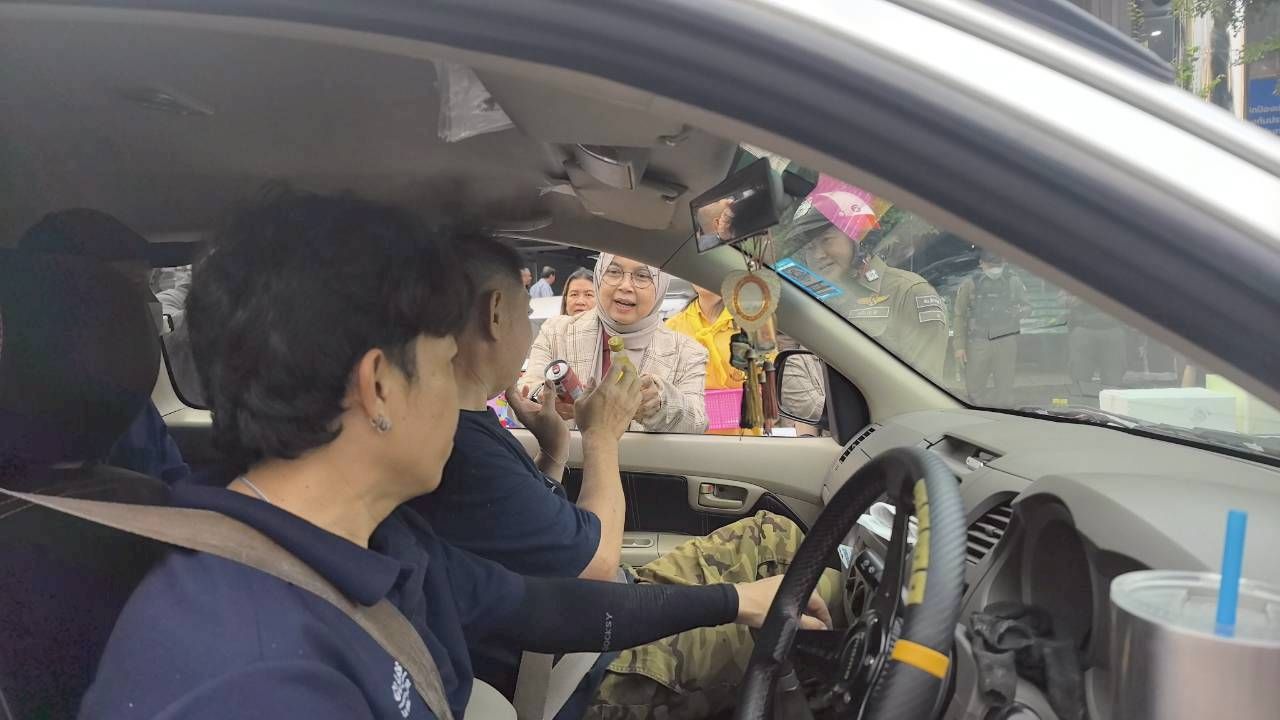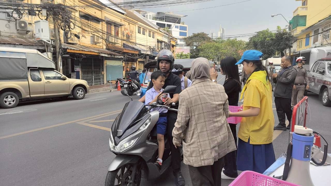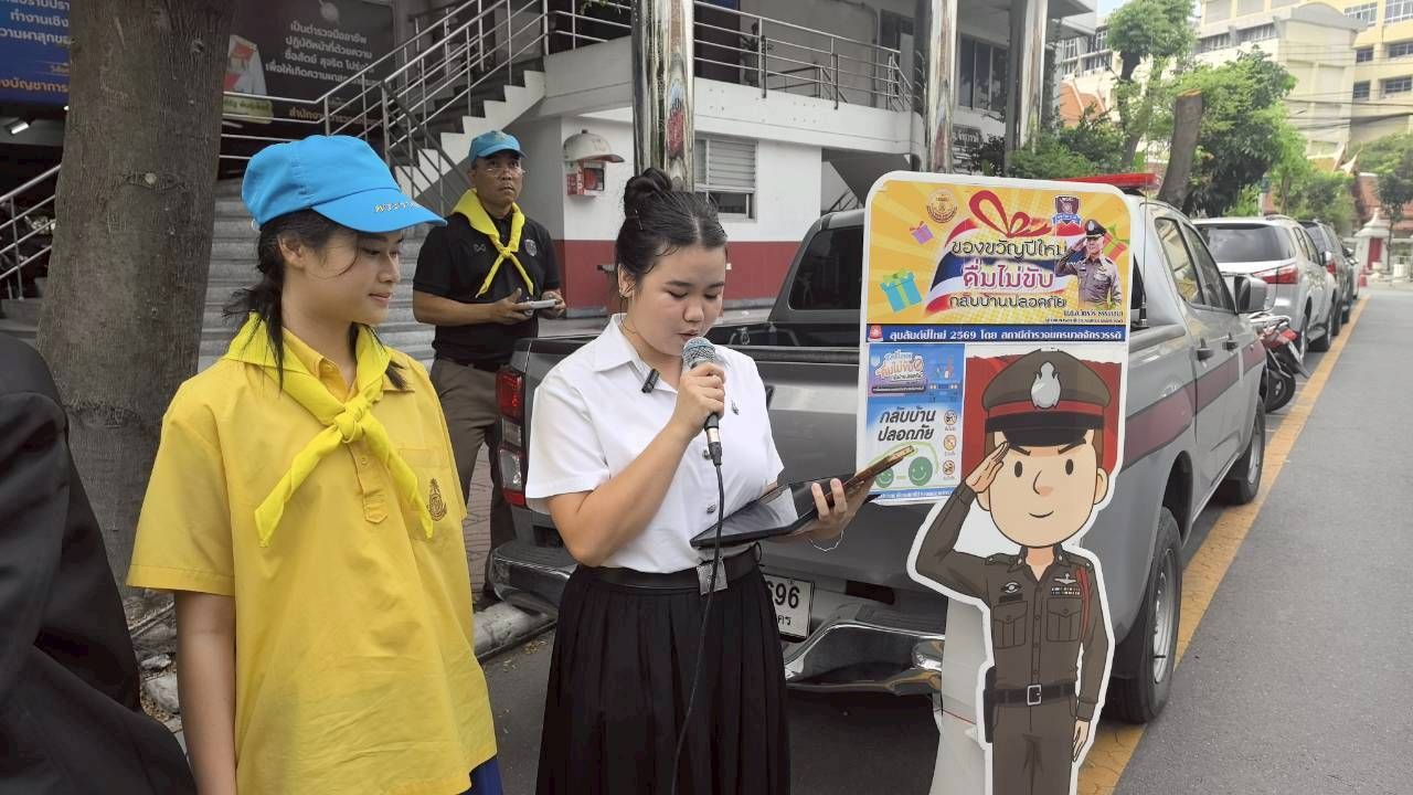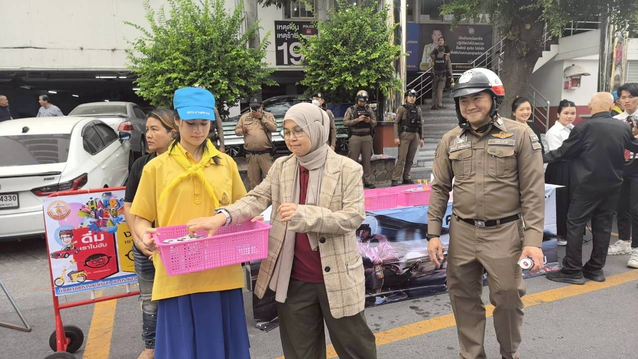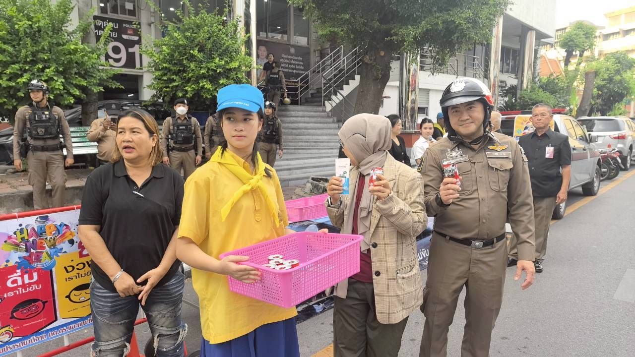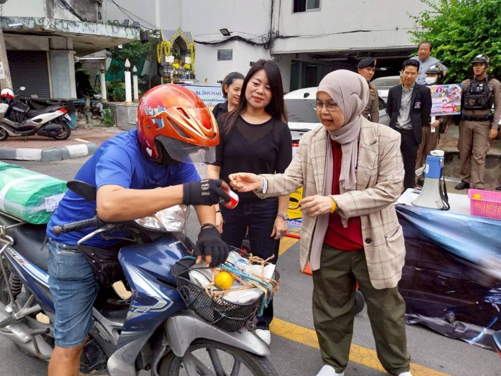 ส่งความสุข "Merry Christmas" ผนึก กต.ตร.-นศ.อาสา แจกเครื่องดื่ม-ผ้าเย็น รณรงค์ขับขี่ปลอดภัยรับปีใหม่ 69