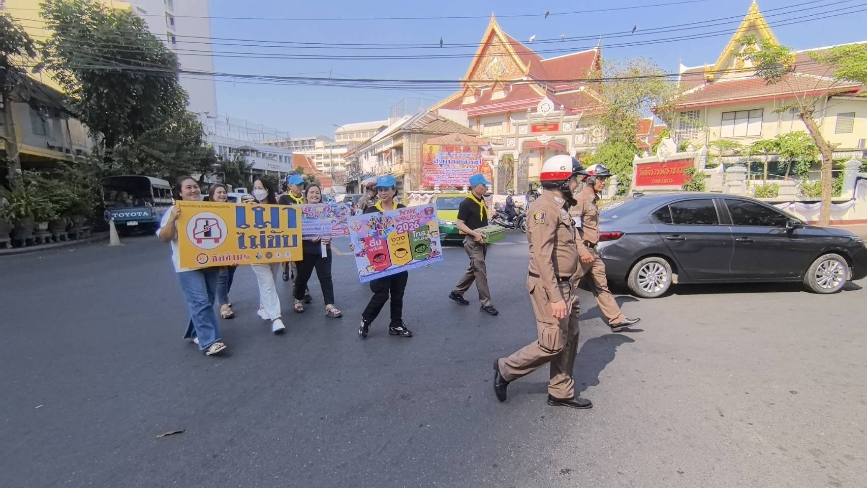 สน.จักรวรรดิ – (30 ธ.ค. 69) ภายใต้อำนวยการของ พ.ต.อ.วัชรวีร์ ธรรมเสมา ผู้กำกับการสถานีตำรวจนครบาลจักรวรรดิ และการดำเนินงานโดย พ.ต.ท.พีรพงศ์ พงศ์ศักดากร รองผู้กำกับการจราจรฯ ได้จัดกิจกรรม "จิตอาสาจราจร" รณรงค์ความปลอดภัยบนท้องถนนช่วงเทศกาลปีใหม่ 2569 ภายใต้สโลแกน "ดื่มไม่ขับ ง่วงไม่ขับ โทรไม่ขับ ไม่รีบ ไม่เร่ง กลับบ้านปลอดภัย"